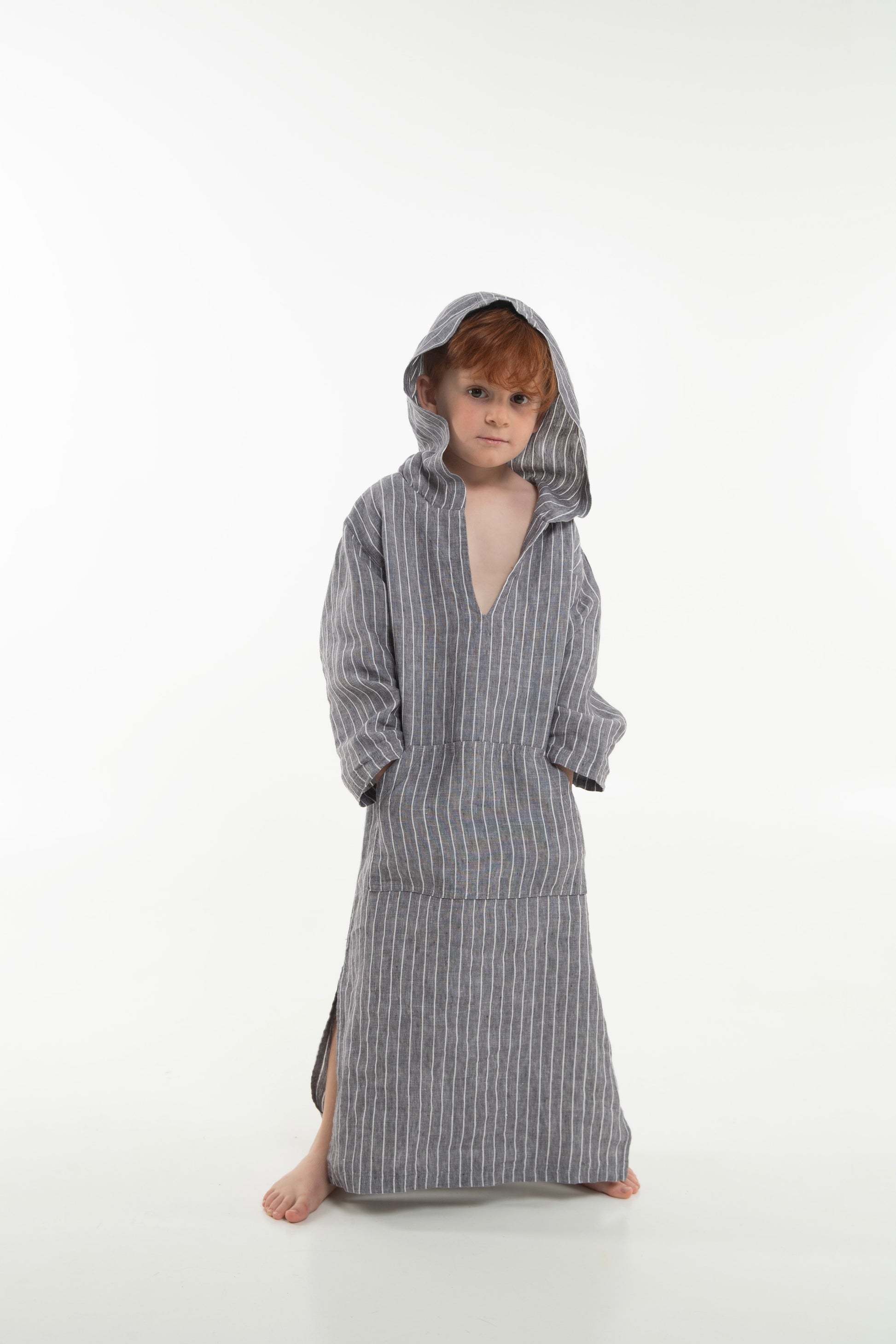 Indulge your little ones in the embrace of luxury with our Unisex Kids Hooded Kaftan – a delightful ensemble crafted from pure, ultra-soft linen. Designed for both boys and girls, this charming kaftan brings a touch of whimsy to every adventure.