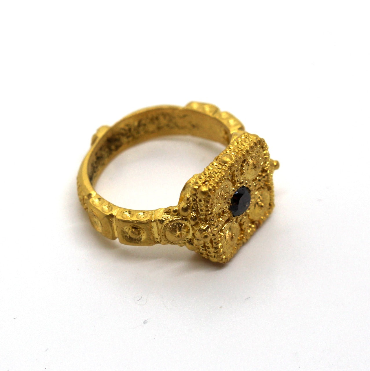 Ring Pure Gold 24ct with salt and pepper diamond - 'All that Is' Collection 1017